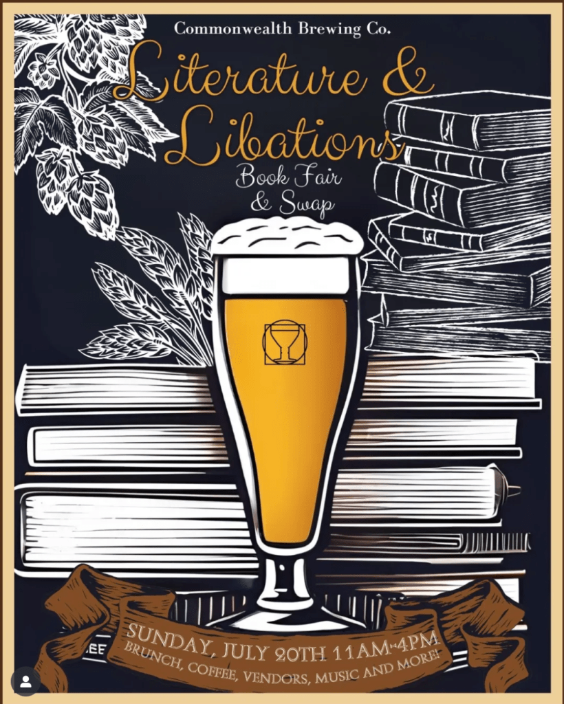 Sunday, Sunday, Sunday! Commonwealth Brewing in Old Town Fairfax is hosting a book fair and book swap alongside their usual weekend brunch. That’s Sunday 20 July from 11am till 4pm.