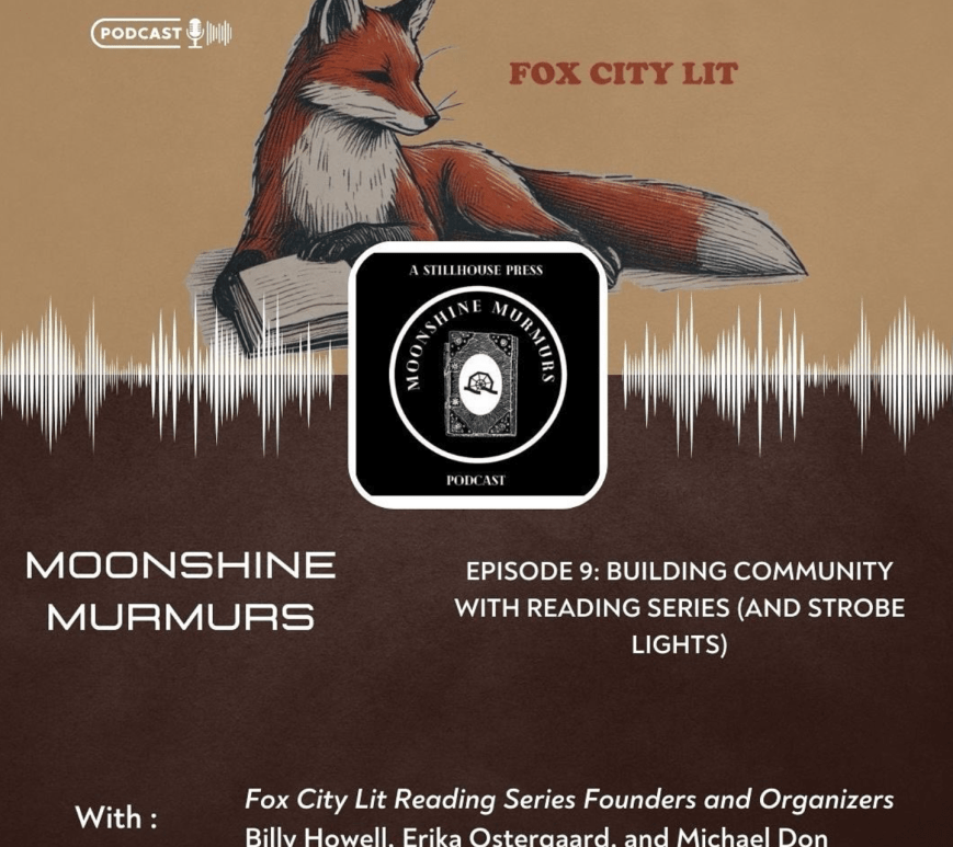 From the Stillhouse Press Instagram: It’s time to tune into the newest episode of Moonshine Murmurs Podcast! Get ready to listen to Episode 9: Building Community with Reading Series (and Strobe Lights).In this episode, host Carol Mitchell and Fox City Lit founders and organizers Billy Howell, Erika Ostergaard, and Michael Don. They riff about their Fairfax City reading series, Fox City Lit, discussing their upcoming … Continue reading Fox City Lit Interviewed on Stillhouse’s Moonshine Murmurs Podcast